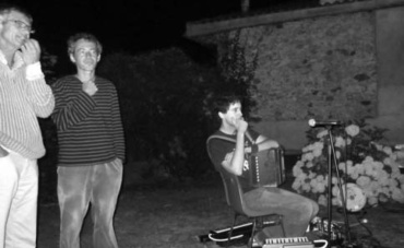 Toma 8 / Las Jornadas en Anères (Francia) / Un año más –y ya van diez– las Jornadas de Cine Mudo de Uncastillo estuvieron presentes en Anéres (Francia). Esta vez la cita cambió un poco, en lugar de acudir durante la celebración del XVI Festival d’Anères (4 al 8 de junio de 2014), nuestros colegas del otro lado de los Pirineos nos invitaron a protagonizar una de las actividades que realizan mensualmente. Fuimos hasta allí el día 22 de julio con la película documental argentina La expedición Argentina Stoessel (Adán y Andrés Stoessel, 1928) cuya proyección acompañó en directo al acordeón diatónico Ignacio Alfayé. Como podéis ver en las fotos del montaje, la proyección fue al aire libre, en un sitio precioso. La película, cedida por la Cinemateca Argentina, fue proyectada en Uncastillo en 2011 y narra la aventura de los hermanos Stoessel que en 1928 recorrieron América Latina desde Buenos Aires hasta Nueva York en un Chevrolet. Siempre es un placer estar en Anères, por el interés que el público demuestra hacia el cine mudo, por su amabilidad y hospitalidad. Gracias a todos nuestros amigos de la asociación Remue Méninges que es la que organiza estos eventos. À la prochaine
